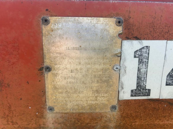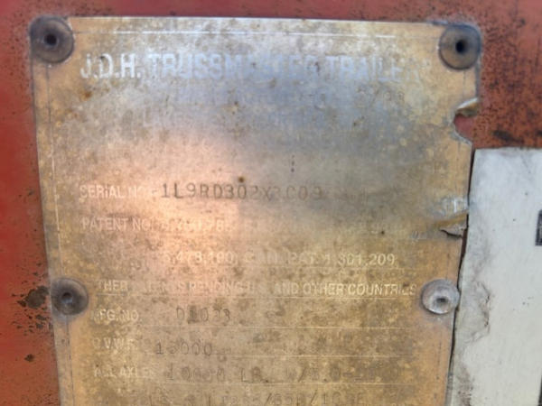 FULL OPERATIONS NOT TESTED. RIGHT REAR HUB CAP LEAKING, MULTIPLE ROLLERS DO NOT SPIN/1 ROLLER MISSING. Approximate Measurements: 35 FT Length; 105 IN Width.