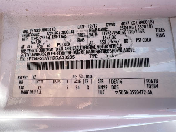 STARTED ON SITE W/JUMP, FULL OPERATIONS NOT TESTED. UNIT WILL NOT GO INTO REVERSE, DENT IN FRONT OF P/S DOOR, RUST ON ROCKERS, WARNING LIGHTS ON: TIRE PRESSURE WARNING LIGHT ILLUMINATED. Showing: 175,814 Miles.
