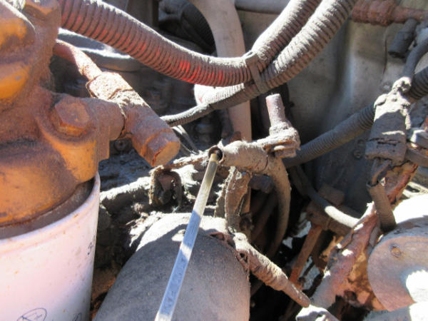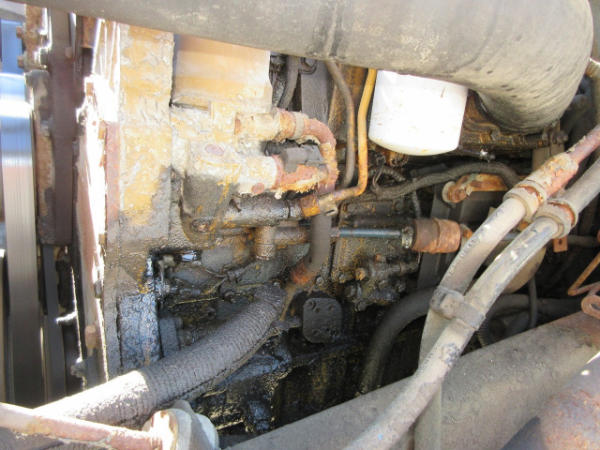 STARTED ON SITE, FULL OPERATIONS NOT TESTED. LEAKAGE AT OIL PAN, REAR SEAL, VALVE COVER, TRANSMISSION AREA, NO A/C. Showing: 58,858 / 282,269 (ECM) Miles; 4,653 Hours.