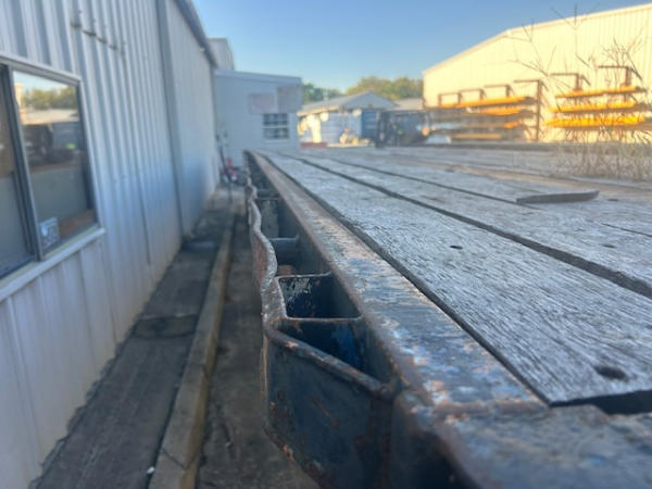 FULL OPERATIONS NOT TESTED. DECK BOARDS DAMAGED, VARIOUS DINGS/DENTS/SURFACE RUST, SIDE RAILS BENT.