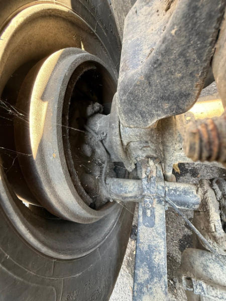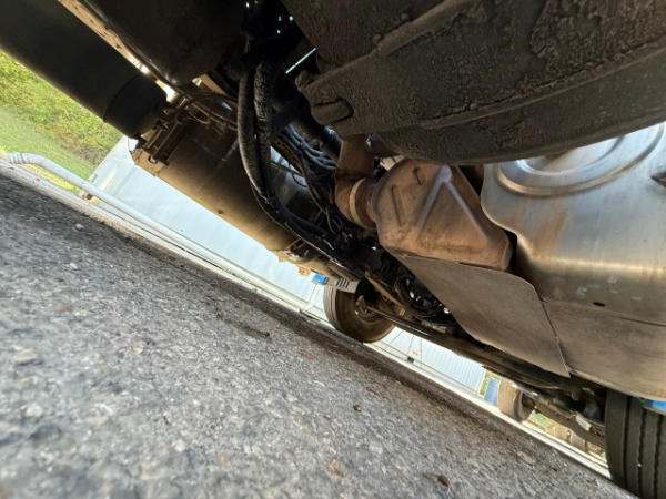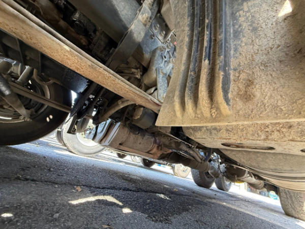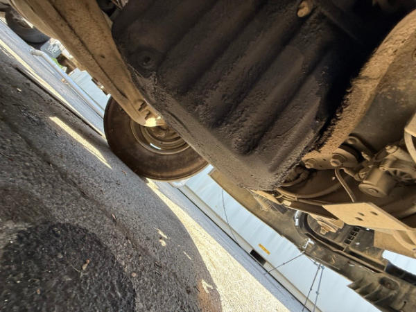 STARTED ON SITE W/JUMP, FULL OPERATIONS NOT TESTED. SEE ECM FOR FAULTS. LEAKAGE: FUEL RAIL, POWER STEERING GEARBOX AND OIL PAN AREAS, REAR CROSS MEMBER BENT ON D/S FRAME, BUMPER DAMAGED ON D/S, WARNING LIGHTS: CHECK ENGINE LIGHT ILLUMINATED, REAR TIRES SINGLED OUT.
