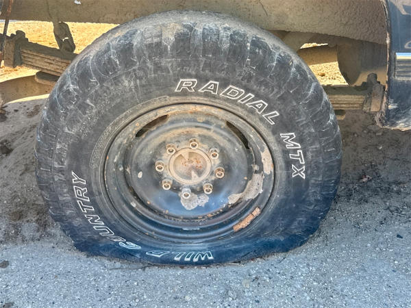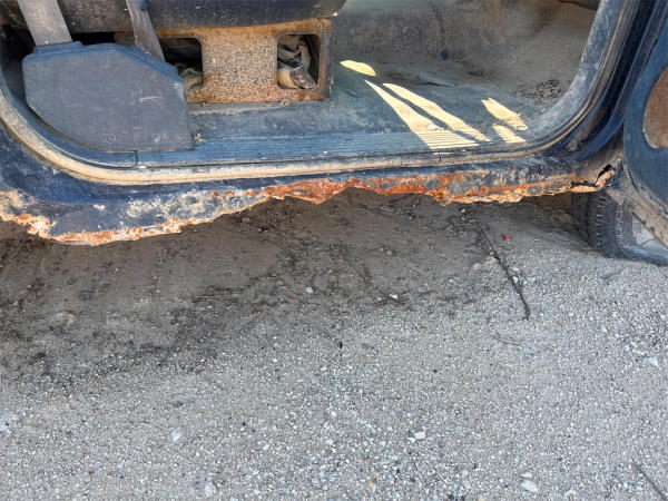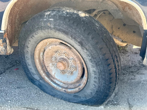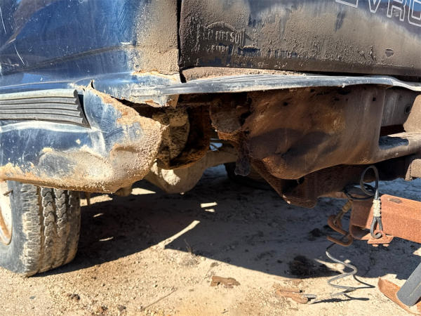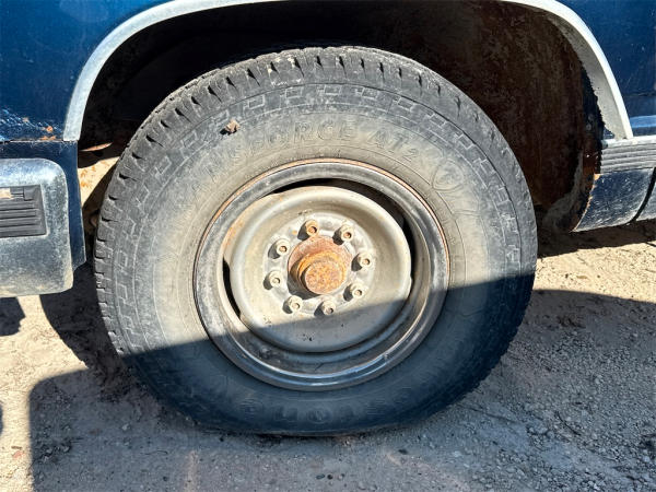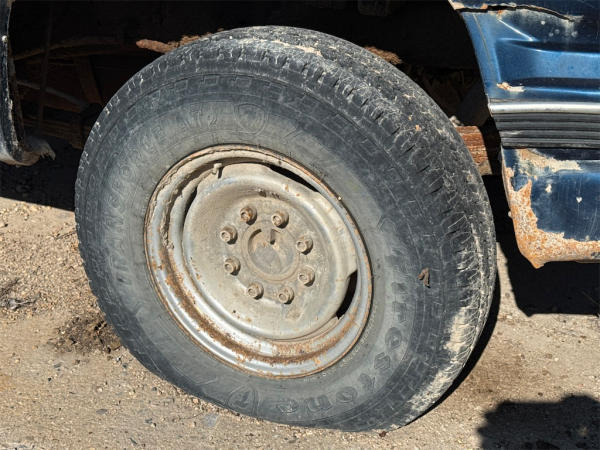 NON-RUNNER, FULL OPERATIONS NOT TESTED. CRANK/NO START, BOTH DOOR LATCHES INOP, DO NOT CLOSE; D/S WINDOW INOP AND DOOR PANEL MISSING, TAILGATE LATCH INOP, DOES NOT OPEN; TIRES LOW/FLAT, RUST THROUGHOUT UNIT, WARNING LIGHTS ILLUMINATED.