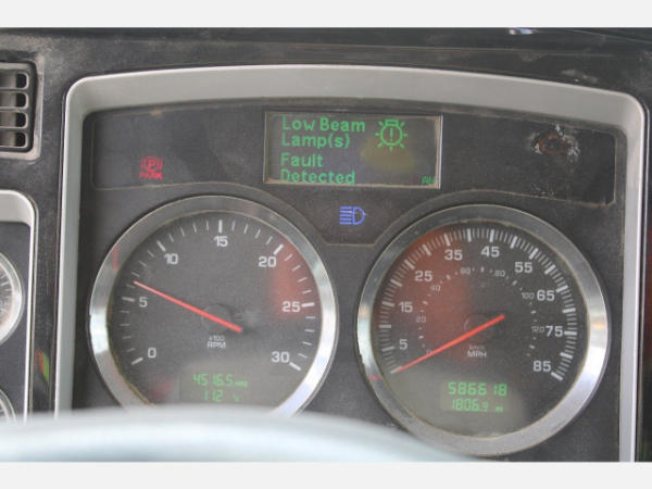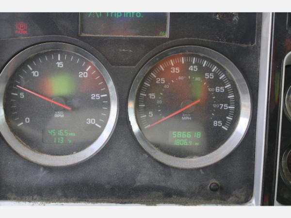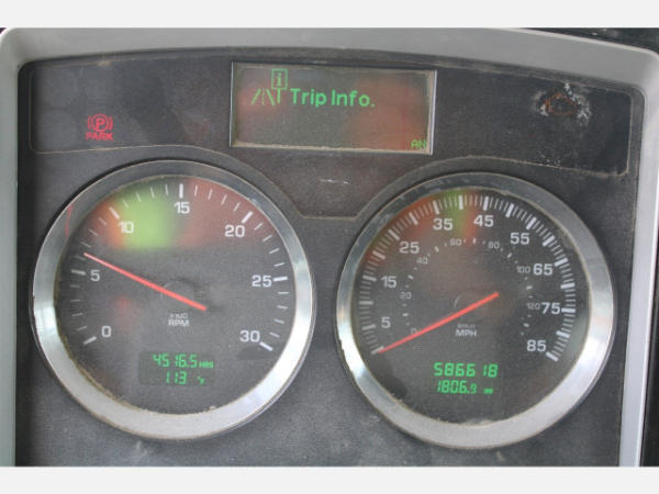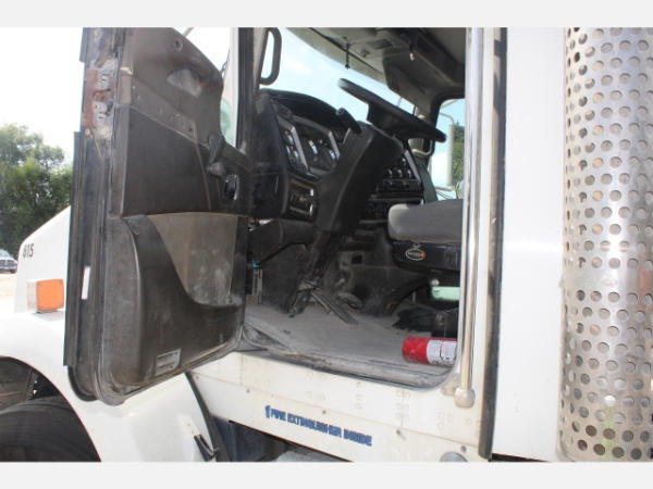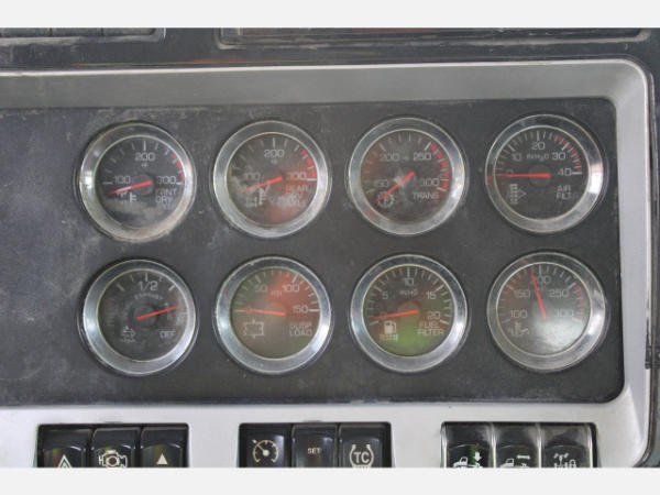 STARTED ON SITE, FULL OPERATIONS NOT TESTED. REAR SHOCKS LEAKING, REAR BRAKES DO NOT RELEASE FROM CENTER AXLE/NOT ABLE TO MOVE TRUCK OUT OF LINE, HOOD CABLES ARE BROKEN, REAR WHEEL FENDERS BENT/DAMAGED, DASH SCREEN SELECTOR KNOB FAULTY-NOT ABLE TO USE SCREEN MENU, P/S HEADLIGHTS INOP.