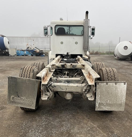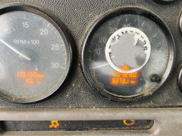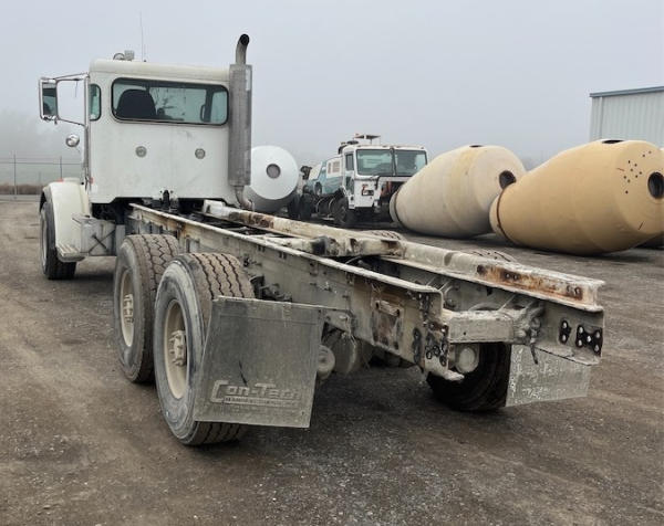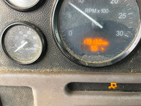 STARTED ON SITE, FULL OPERATIONS NOT TESTED. MISSING KEY, WARNING LIGHTS PRESENT. SHORT CROSSED ON STARTER TO START UNIT, SWITCH DOES NOT WORK. LEAKS PRESENT AT ENGINE REAR MAIN SEAL, HYDRAULIC PUMP, AND HYDRAULIC TANK. REAR BUMPER DAMAGED, DISCHARGE HOPPER RUSTED AND BENT. MISSING EXTENSION CHUTES. HYDRAULIC RAM AND CROSSMEMBER IS ACID DAMAGED, RAVEN NODE AND TRAILER AXLE REMOVED. REAR OF MIXER HAS CONCRETE ACCUMULATION. br>