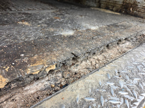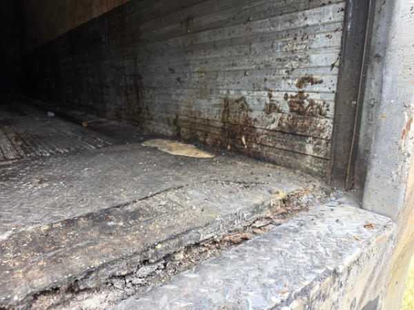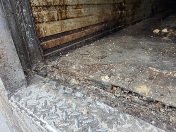 FULL OPERATIONS NOT TESTED. LESS RUBBER BUMPERS ON BOTH SIDES OF LOADING DOCK, ROOF PANEL LOOSE.