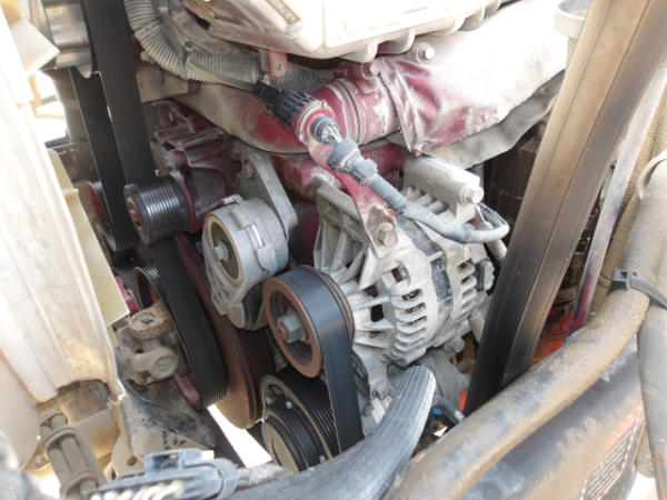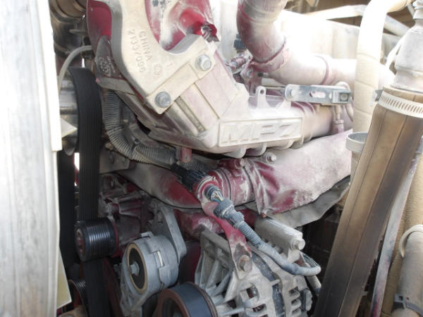 STARTED ON SITE, FULL OPERATIONS NOT TESTED. LEAKS PRESENT: OIL PAN GASKET AREA, POWER STEERING GEARBOX & PUMP, HYDRAULIC PUMP, AND DIFFERENTIAL FLUID LEAKING AROUND GASKET BY COVER, ACTIVE AFTER TREATMENT SYSTEM, WARNING LIGHTS PRESENT, LESS SCREWS FROM CAB DOOR D/S, HOOD LATCH P/S BROKEN.