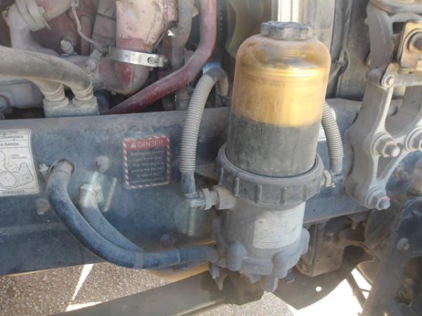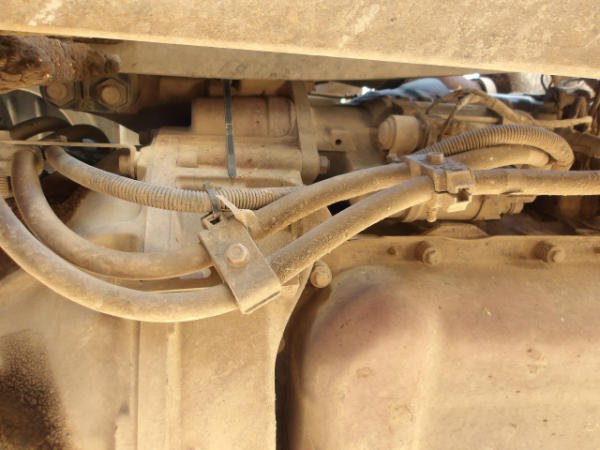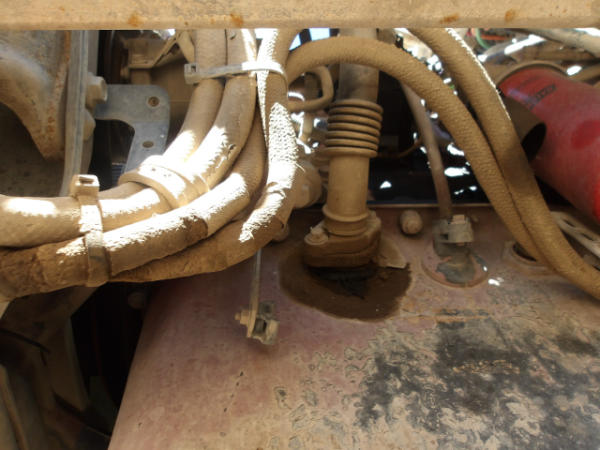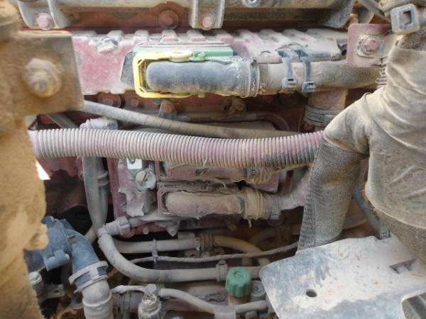 STARTED ON SITE, FULL OPERATIONS NOT TESTED. ENGINE IN D-RATE, DASH DISASSEMBLED, LEAKAGE AROUND BELL HOUSING AND TOP OF TRANSMISSION.