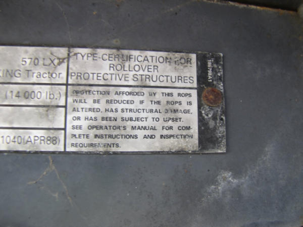 NOT TITLED PER STATE REGULATIONS. NON-RUNNER, FULL OPERATIONS NOT TESTED. ENGINE NEEDS CLEANED TO PINPOINT SOURCE OF LEAK, TRANSMISSION NOT FUNCTIONING, HYDRAULIC CYLINDER LEAKING REAR R/S, HOUR METER UNABLE TO READ, TAIL LIGHT NOT FUNCTIONING: LEFT REAR SPOT LIGHT DAMAGED.