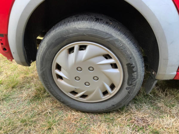 STARTED ON SITE, FULL OPERATIONS NOT TESTED. WARNING LIGHTS PRESENT, WORN TIRES.