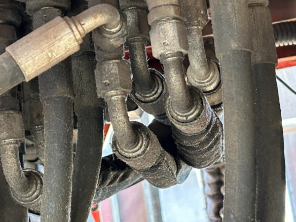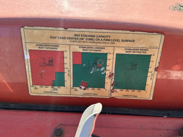 NOT TITLED PER STATE REGULATIONS. STARTED ON SITE. FULL OPERATIONS NOT TESTED. DIESEL FUEL IN HYDRAULIC FLUID SYSTEM, HYDROSTATIC DRIVE SYSTEM INOP, INTERNAL HOSES AND CONNECTIONS HAVE HEAVY FLUID RESIDUE, HYDRAULIC CIRCUITS NEED FLUSHED AND INDIVIDUALLY PRESSURE TESTED. LESS PRESSURE OF LIFT AND DRIVE HYDRAULIC CIRCUITS, SEALS SATURATED WITH FUEL.