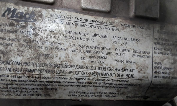 STARTED ON SITE, FULL OPERATIONS NOT TESTED. WARNING LIGHTS PRESENT.