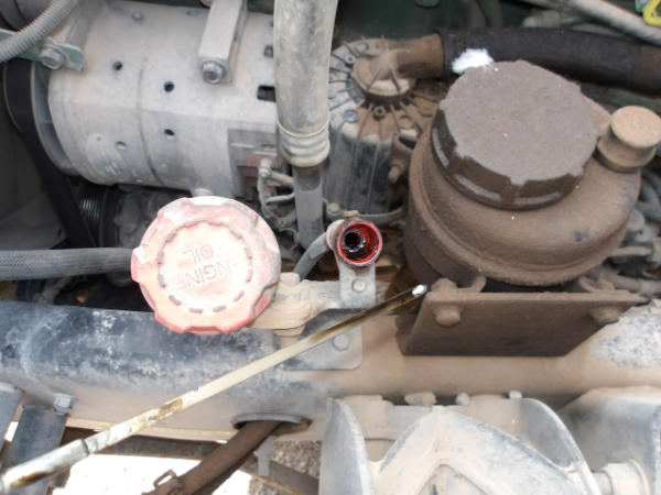 STARTED ON SITE, FULL OPERATIONS NOT TESTED. LEAKAGE AT OIL PAN, CRANKCASE BREATHER, BELL HOUSING, AND TRANSMISSION AREAS. WARNING LIGHTS PRESENT.