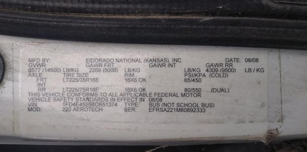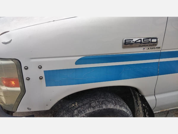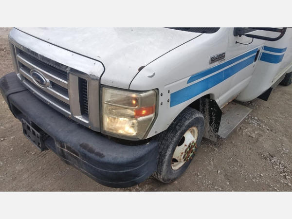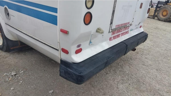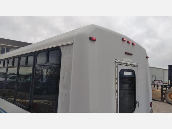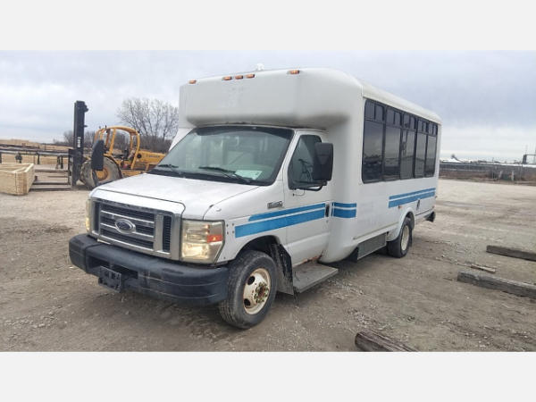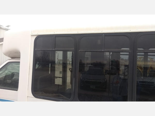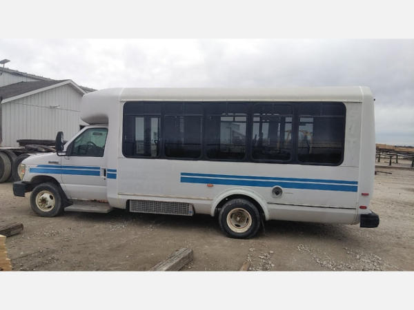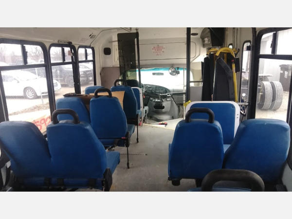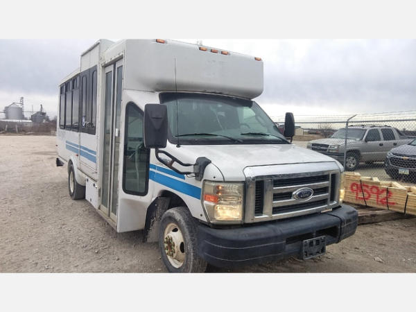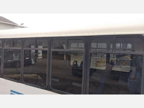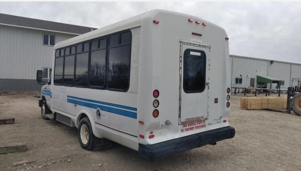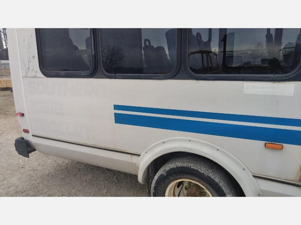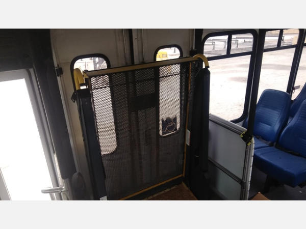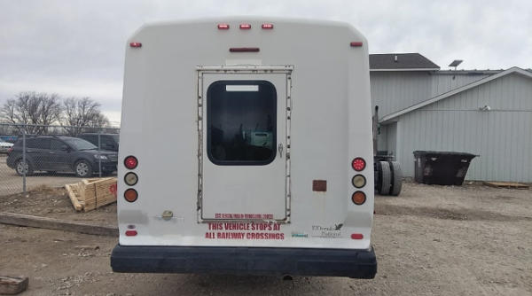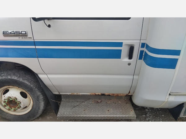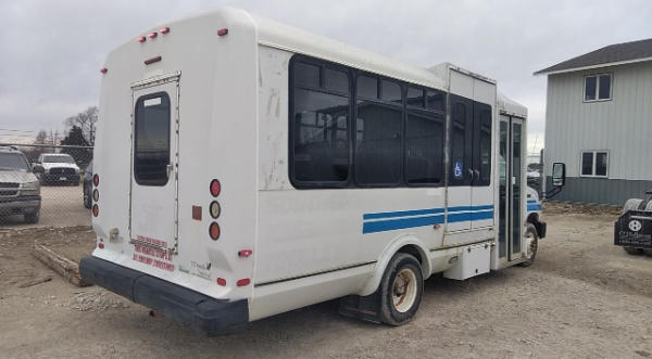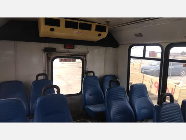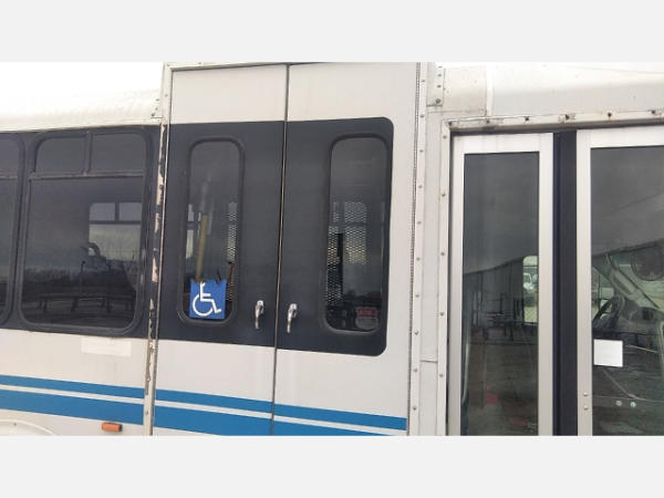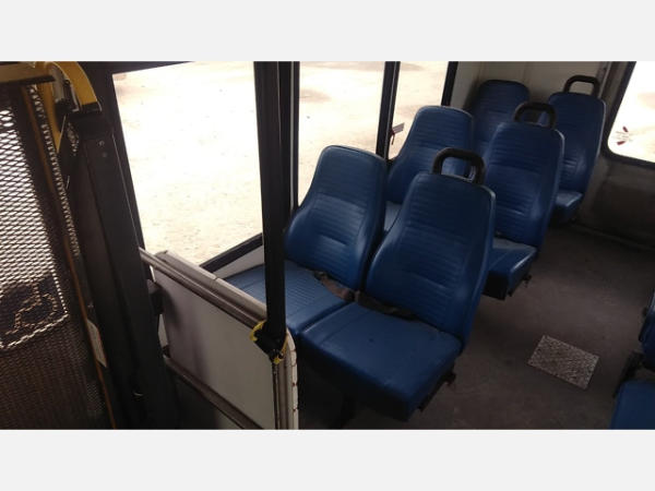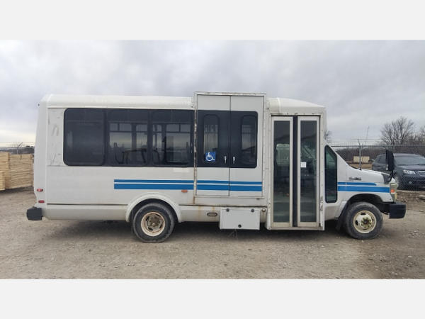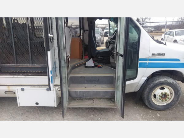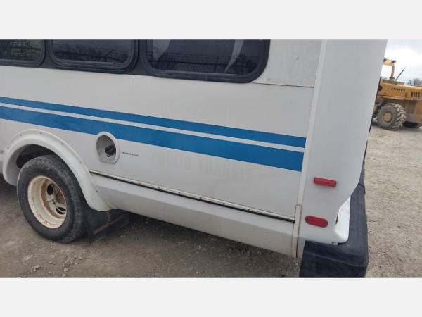 STARTED ON SITE. FULL OPERATIONS NOT TESTED. SHATTERED WINDSHIELD. REAR BUMPER CRACKED. NO POWER TO OPERATE WHEELCHAIR RAMP. OIL LEAKS AT OIL PAN.