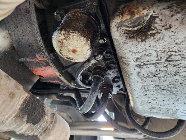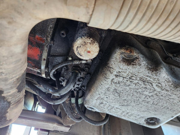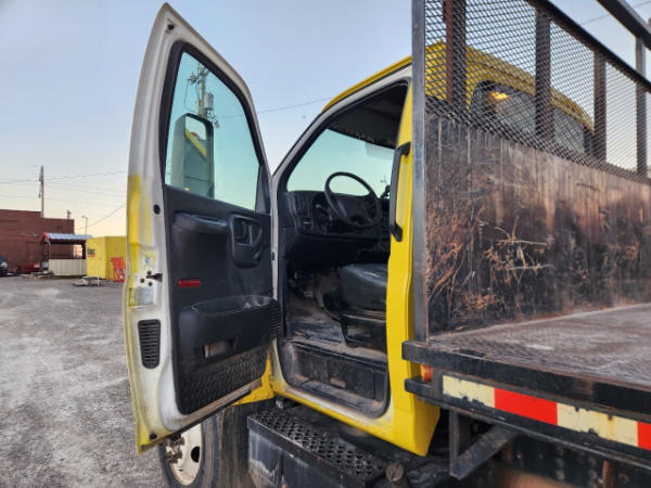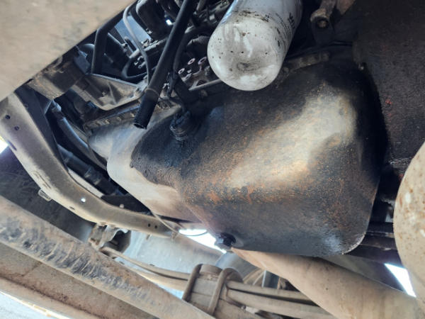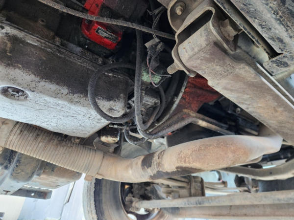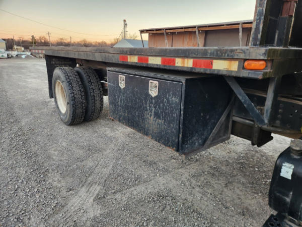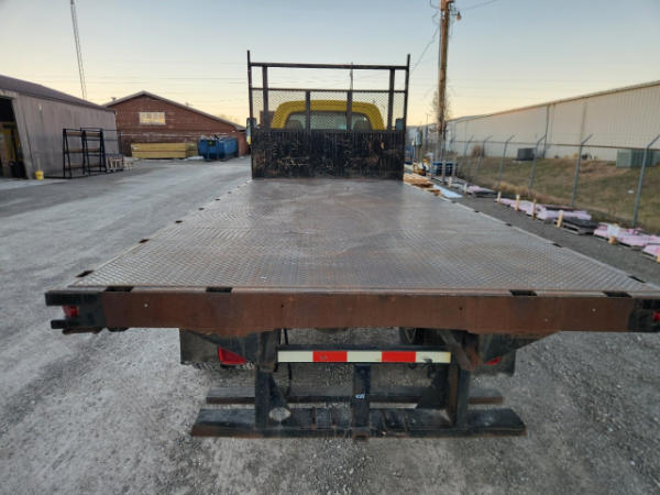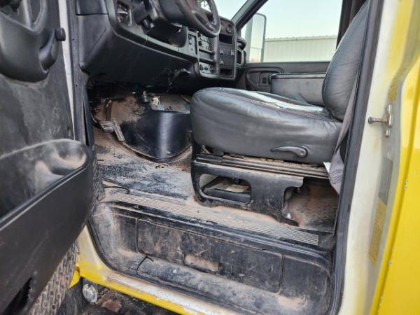 STARTED ON SITE, FULL OPERATIONS NOT TESTED. OIL LEAKS AT OIL PAN AND TRANSMISSION. RUST THROUGHOUT THE UNITS FLATBED/FRONT BUMPER. INTERIOR TORN.