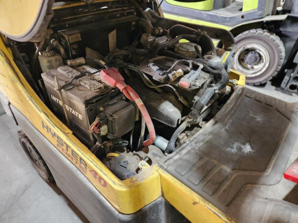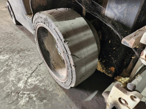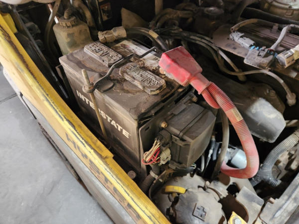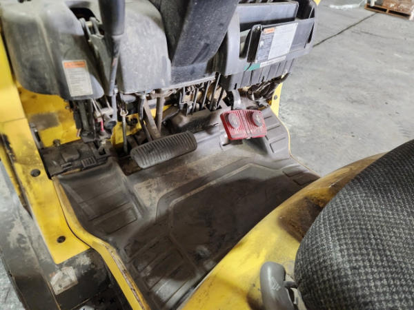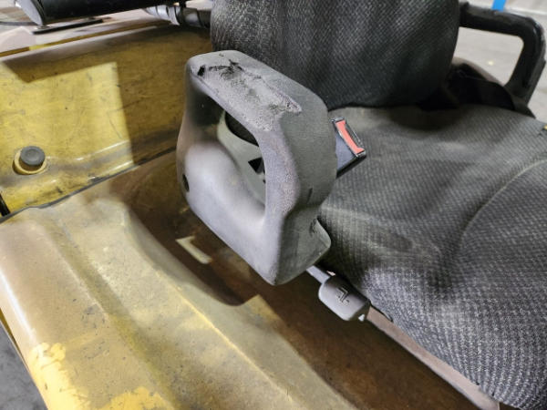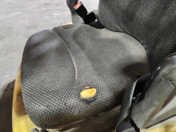 STARTED ON SITE, FULL OPERATIONS NOT TESTED. TORN SEAT. COUNTERWEIGHT SCRATCHES, SURFACE RUST PRESENT.