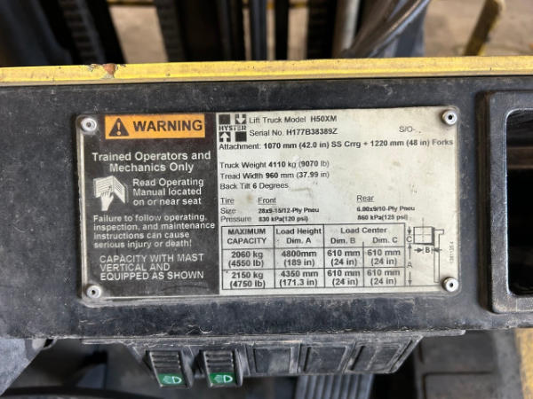 NOT TITLED PER STATE REGULATIONS. STARTED ON SITE, FULL OPERATIONS NOT TESTED. COUNTERWEIGHT & CHASSIS RUSTED. LIFT RACK BENT.