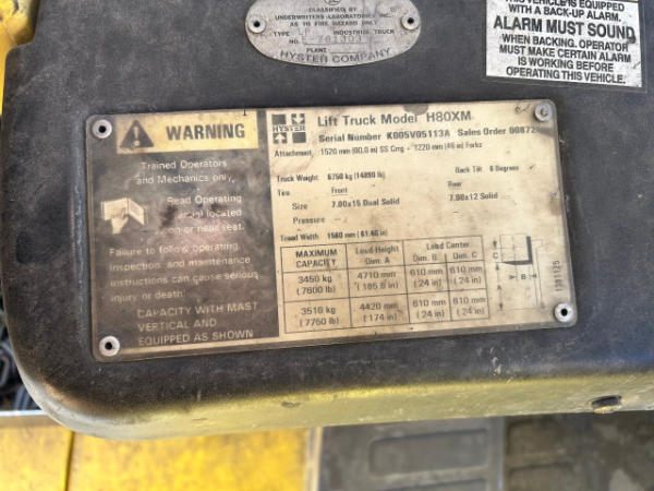 NOT TITLED PER STATE REGULATIONS. NON RUNNER, FULL OPERATIONS NOT TESTED. COUNTERWEIGHT & CHASSIS RUSTED. LIFT RACK BENT.