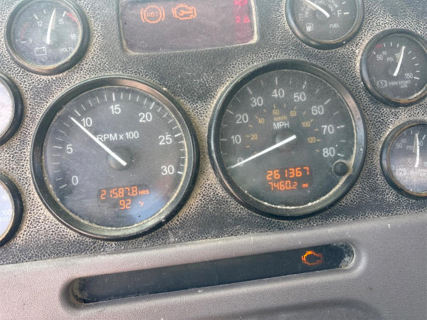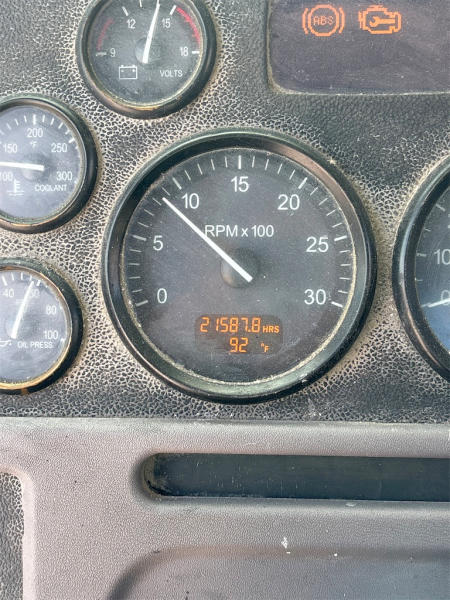 STARTED ON SITE, FULL OPERATIONS NOT TESTED. WARNING LIGHTS PRESENT, LESS PARTS ON DASH, SOME PARTS INSIDE CAB.
