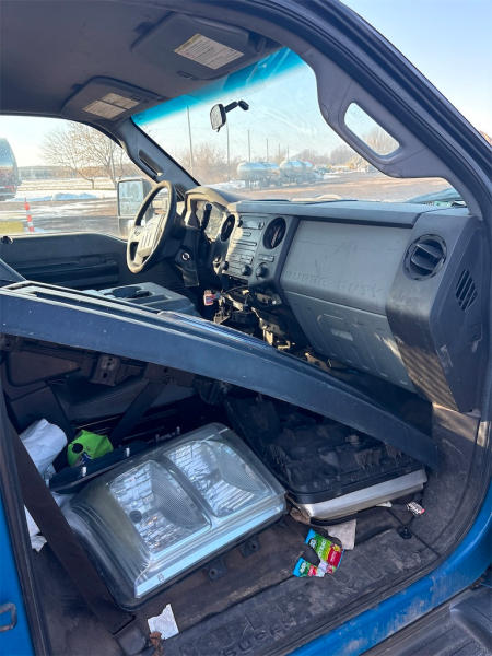 NON-RUNNER, FULL OPERATIONS NOT TESTED. BAD BATTERIES, WARNING LIGHTS PRESENT, LESS: LIFT GATE COMPONENTS & FRONT PASSENGER SEAT, HEADLIGHTS AND FRONT GRILL COMPONENTS INSIDE CAB.