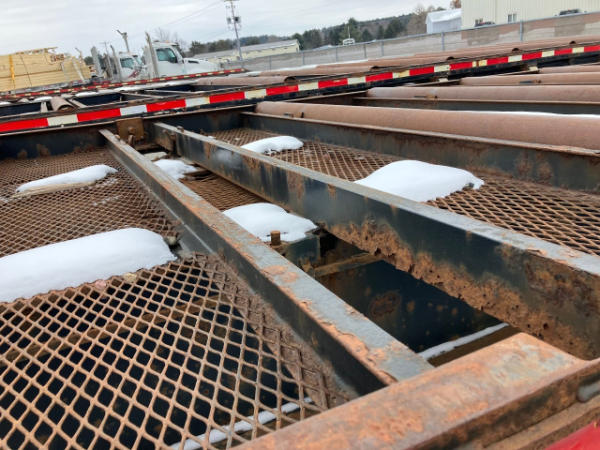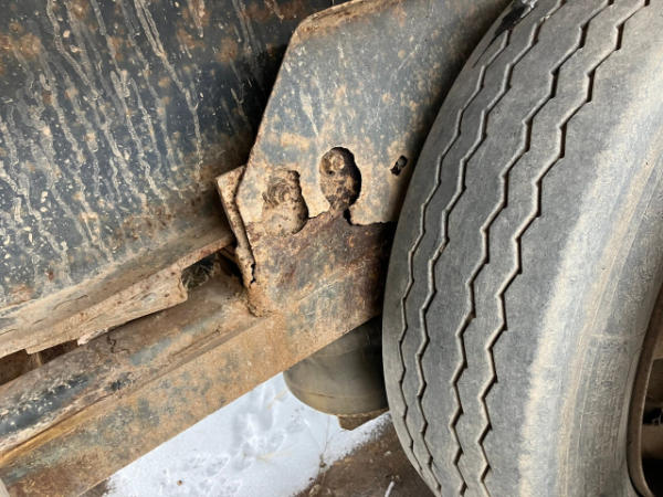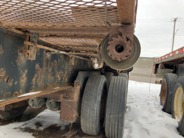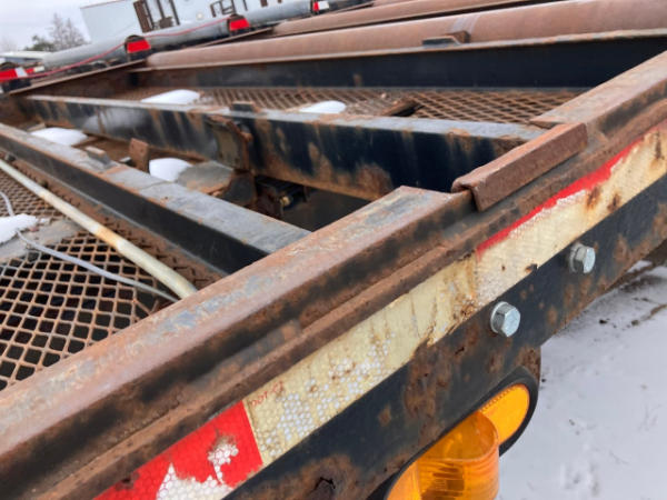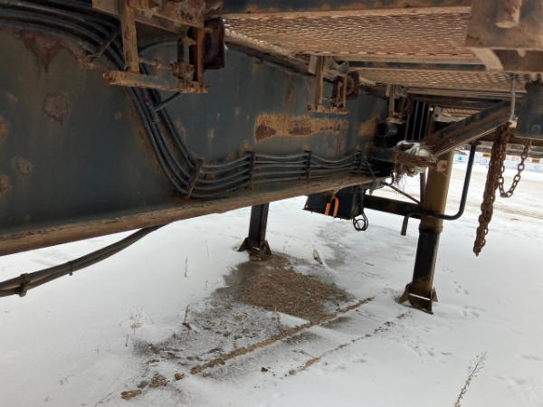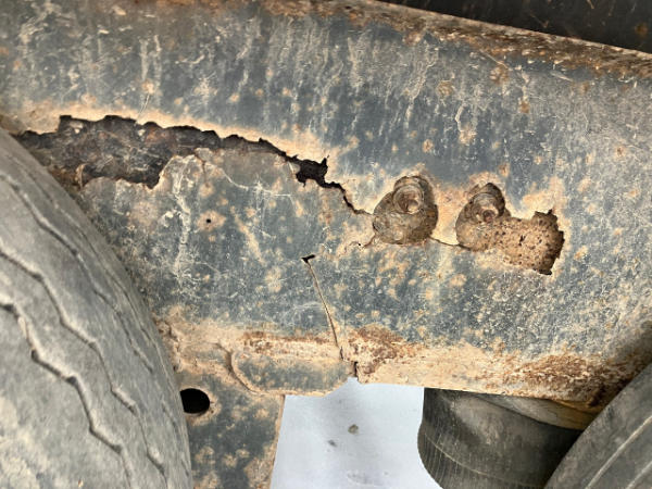 FULL OPERATIONS NOT TESTED. RUST THROUGHOUT UNIT. REAR DECK BENT. FRAME AXLES ARE CRACKED. HEADACHE RACK TORN.