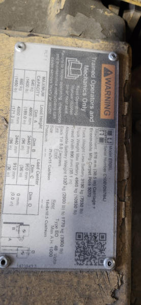 NOT TITLED PER STATE REGULATIONS. STARTED ON SITE. FULL OPERATIONS NOT TESTED. LESS FORKS.