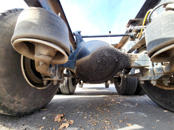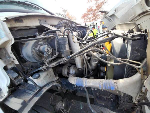 STARTED ON SITE, FULL OPERATIONS NOT TESTED. FLUID LEAKS: ENGINE OIL LEAK (RESIDUE ON FRONT AXLE); SUSPECTED POWER STEERING GEAR LEAK; REAR DIFFERENTIAL LEAK. SUSPENSION/CHASSIS: WORN/DAMAGED REAR DRIVE AXLE AIR BAGS; BENT REAR-MOST FRAME CLOSING CROSSMEMBER. DAMAGED YELLOW TRAILER BRAKE VALVE; WARNING LIGHTS PRESENT. MISSING FRONT FOG LIGHT; DAMAGED AC VENT.