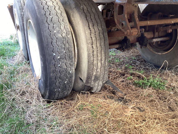 FULL OPERATIONS NOT TESTED. HYDRAULIC FITTING CAP OFF, WORN TIRES, RIGHT REAR INNER TIRE FLAT.