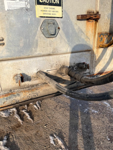 FULL OPERATIONS NOT TESTED. HYDRAULICS INOP, LINES ARE RIPPED OUT FROM BOTTOM OF TRAILER, LESS VIN TAG, LESS FRONT CYLINDERS.