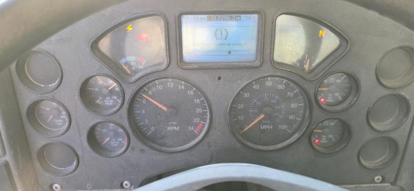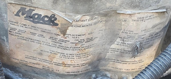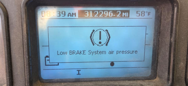 STARTED ON SITE, FULL OPERATIONS NOT TESTED. WARNING LIGHTS PRESENT, LESS AIR VENT ON D/S FRONT CORNER, LOW BRAKE SYSTEM AIR PRESSURE.
