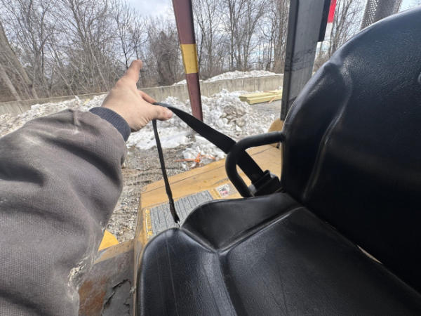 NOT TITLED PER STATE REGULATIONS. STARTED ON SITE, FULL OPERATIONS NOT TESTED. BATTERY CORROSION PRESENT. SEATBELT WONT RETRACT. LESS BOLTS ON EXHAUST COVER. DENTED GRILLE. COUNTER WEIGHT AND BODY SCRATCHES PRESENT. TORN SEAT. R/S HOOD DENTED.