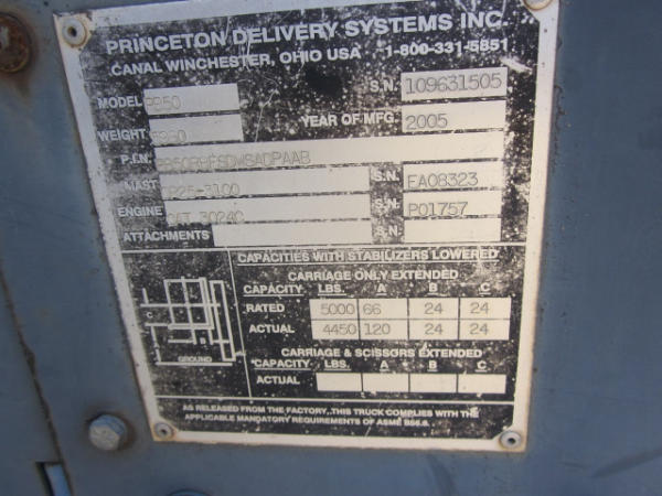 NOT TITLED PER STATE REGULATIONS. STARTED ON SITE, FULL OPERATIONS NOT TESTED. HYDRAULIC FLUID LEAK. ROOF SHIELD CRACKED. RUST PRESENT ON FORKS AND THROUGHOUT UNIT. WORN SEAT. SCRATCHES ON BODY.