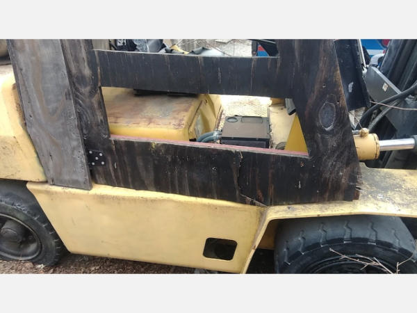 NOT TITLED PER STATE REGULATIONS. NON-RUNNER, FULL OPERATIONS NOT TESTED. OIL PAN AREA COVERED. BATTERY DISCHARGED. LESS R/S DOOR. SEAT TORN. RUST PRESENT THROUGHOUT UNIT. LESS FORKS. LP TANK NOT INCLUDED.