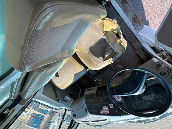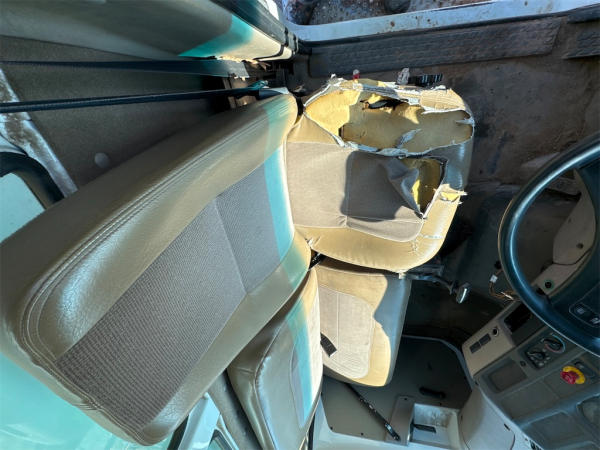STARTED ON SITE, FULL OPERATIONS NOT TESTED. D/S FENDER DAMAGE. D/S SEAT TORN.