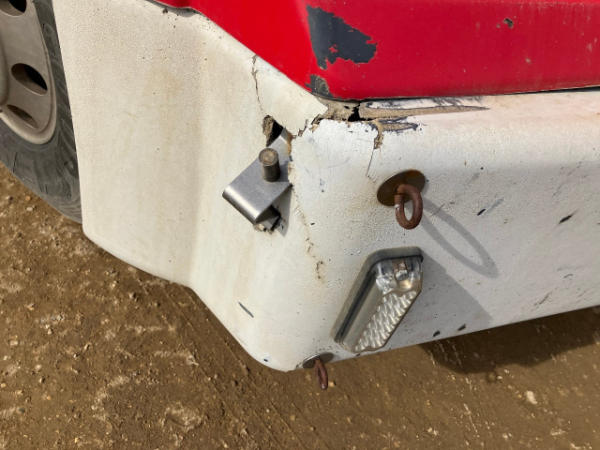 STARTED ON SITE, FULL OPERATIONS NOT TESTED. FAULT CODES PRESENT - SEE DIAGNOSTIC REPORT. POWER STEERING LEAK AT PUMP. BUMPER, HOOD AND GRILLE DAMAGED. CATWALK BENT.
