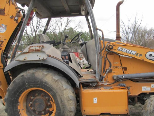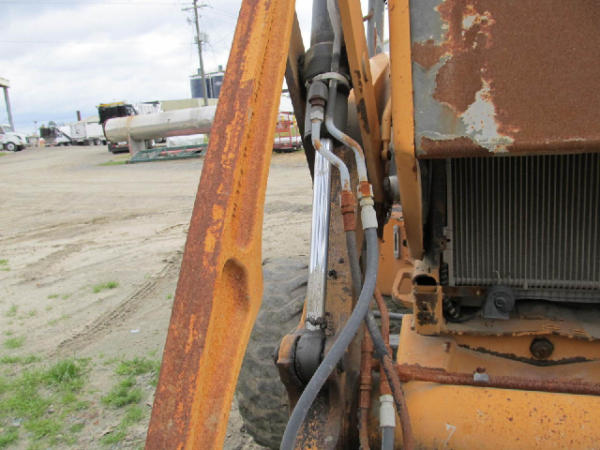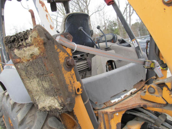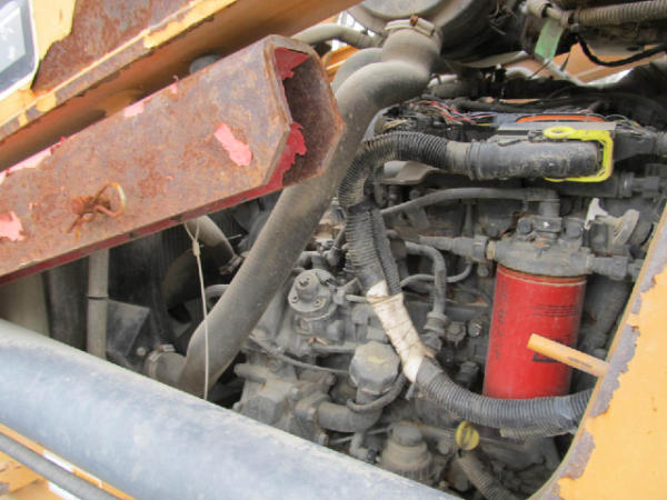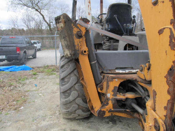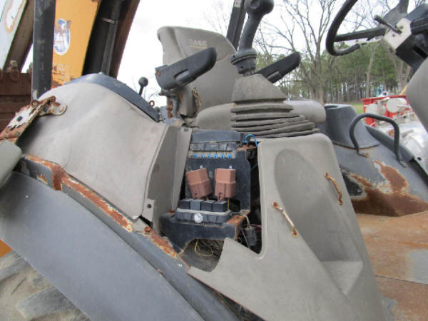 NOT TITLED PER STATE REGULATIONS. STARTED ON SITE W/JUMP, FULL OPERATIONS NOT TESTED. Broken Ignition Switch: Used Starter Connection Wires To Start; Warning Lights Present, Leakage From Backhoe Hydraulic Hoses & Backhoe Arm Cylinders, Outriggers Inop, Lever Pedestal & Instrumental Panel Cover Cracked, Less Engine Hour Meter & Radiator Grille, Bucket Metal Torn & Dented, Heavy Rust Throughout Unit, Worn Tires.