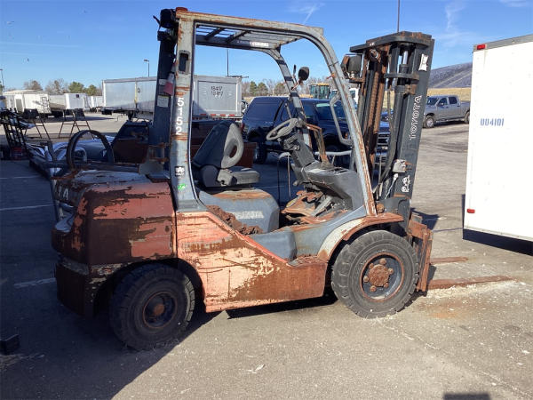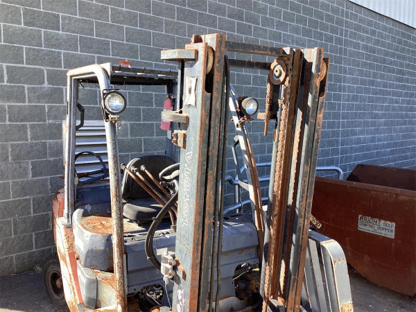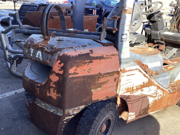 NOT TITLED PER STATE REGULATIONS. NON-RUNNER, FULL OPERATIONS NOT TESTED. LP TANK NOT INCLUDED. BAD ENGINE AND BATTERIES, HOUR METER INOP, FORK GUARD CUT OFF, LESS TRANSMISSION COVER.