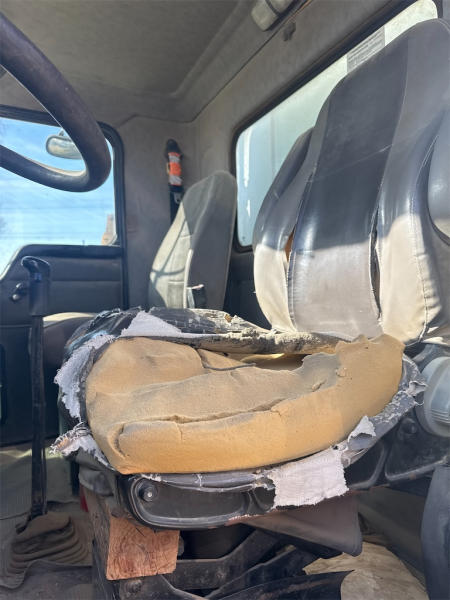 STARTED ON SITE W/JUMP, FULL OPERATIONS NOT TESTED. RUST THROUGHOUT UNIT. SEAT TORN.