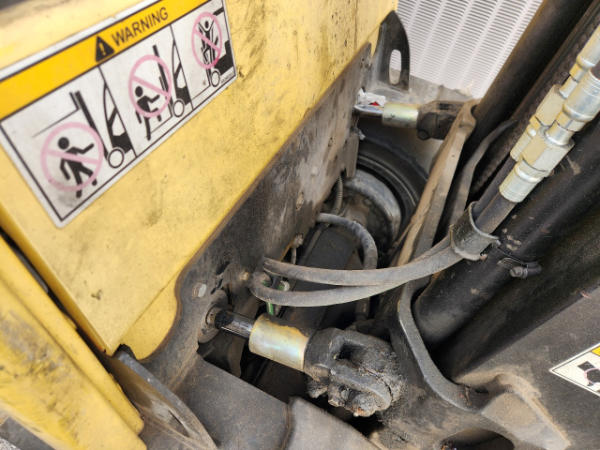 STARTED ON SITE, FULL OPERATIONS NOT TESTED. FRONT VALVE COVER OIL LEAK. COUNTER WEIGHT GOUGED. SURFACE RUST PRESENT. SEAT TORN.