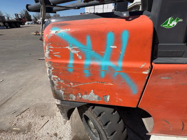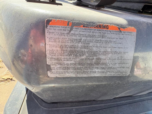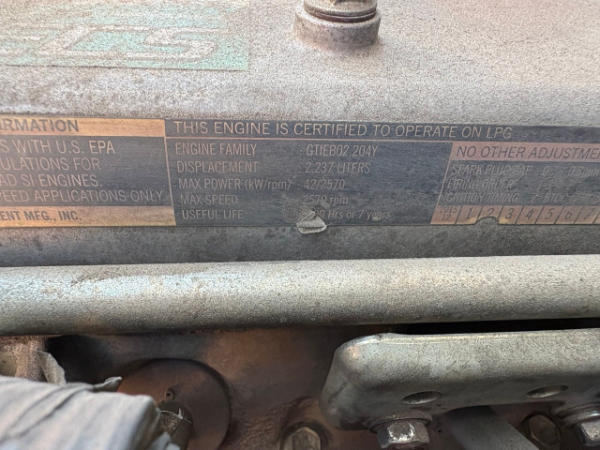 NOT TITLED PER STATE REGULATIONS. NON-RUNNER, FULL OPERATIONS NOT TESTED. LOOSE BOLT FROM DRIVE SHAFT CAUSING TRANSMISSION FLUID LEAKAGE. RUSTED FORKS. SCRATCHES THROUGHOUT UNIT. LP TANK NOT INCLUDED.
