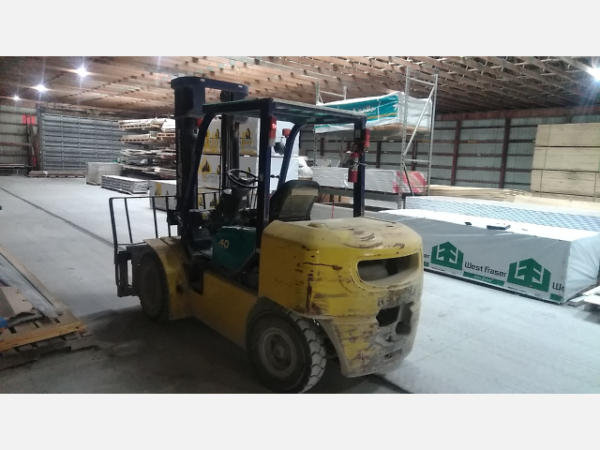 NOT TITLED PER STATE REGULATIONS. STARTED ON SITE, FULL OPERATIONS NOT TESTED. BAD BATTERIES. VALVE COVER LEAKING. SCRAPES, SCUFFS AND RUST THROUGHOUT COUNTERWEIGHT. MAST CYLINDER P/S SEEPING. DASH CRACKED. SEAT TORN. LP TANK NOT INCLUDED.