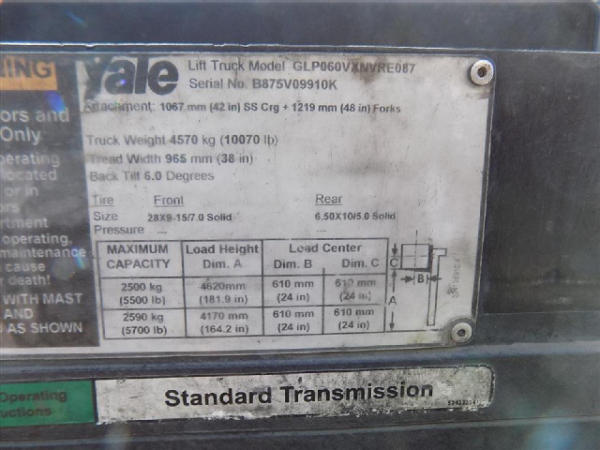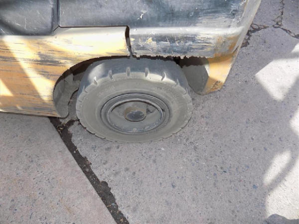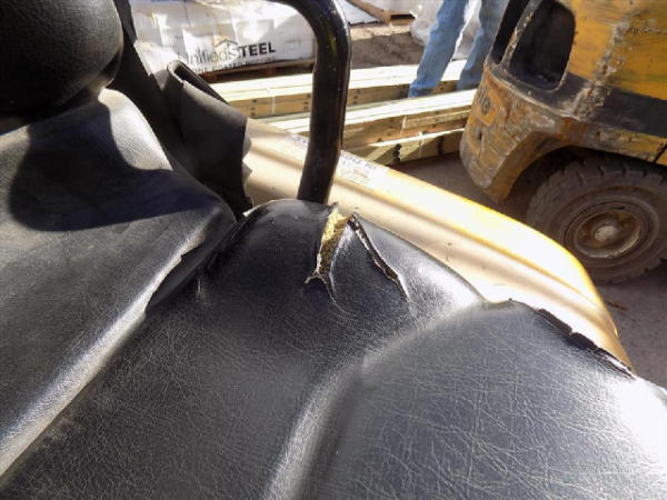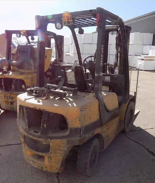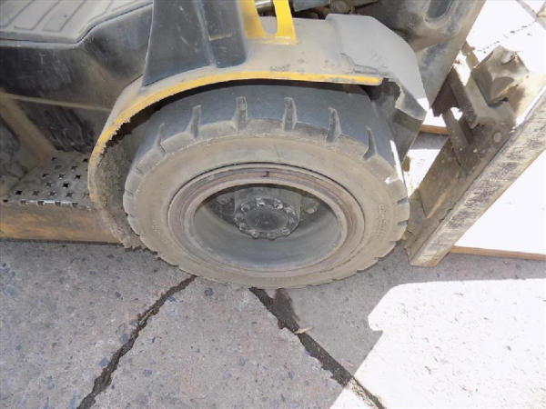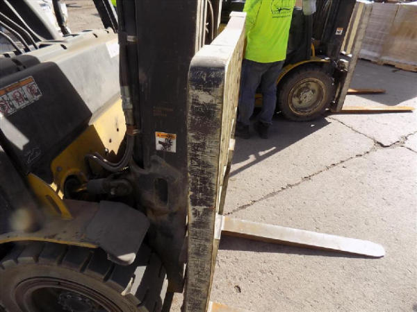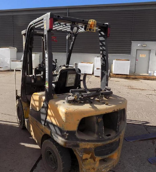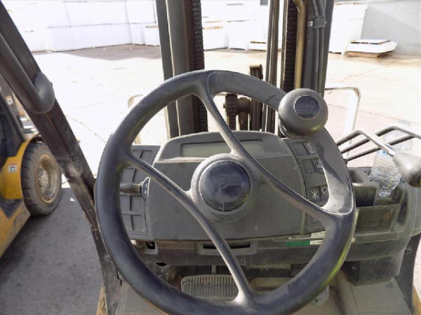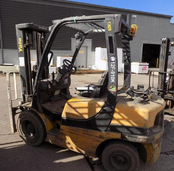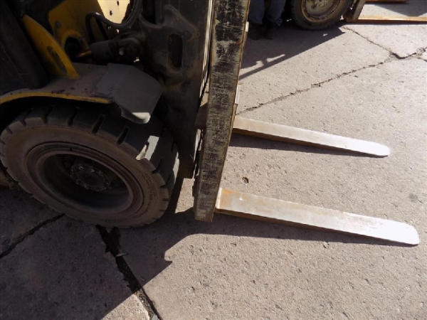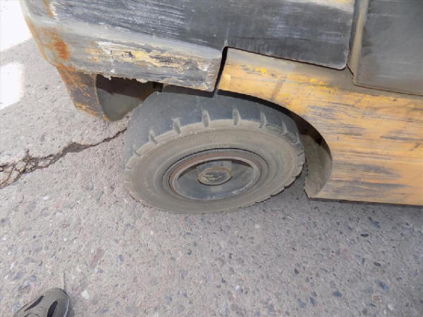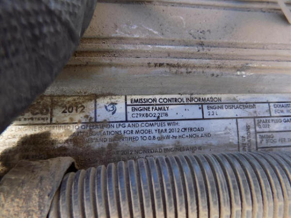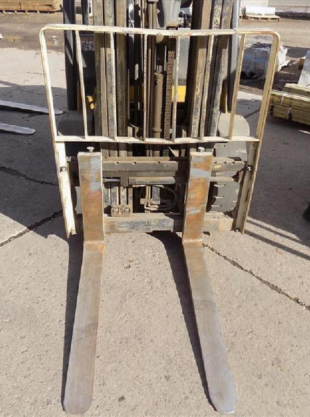 NOT TITLED PER STATE REGULATIONS. STARTED ON SITE, FULL OPERATIONS NOT TESTED. SEAT TORN. CHIPS AND SCRATCHES THROUGHOUT UNIT. FORK CARRIAGE BENT ON TOP. FRONT FENDERS DAMAGED. LESS AIR FILTER. HYDRAULIC HOSES LEAKING. RADIATOR LEAKING. CHAINS STRETCHED. NON COMPLIANT FORKS. LESS REVERSE MIRRORS. NEEDS NEW BELTS. TIRES WORN. LP TANK NOT INCLUDED.