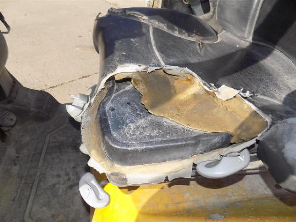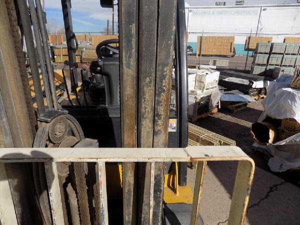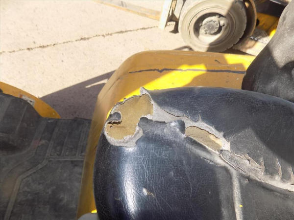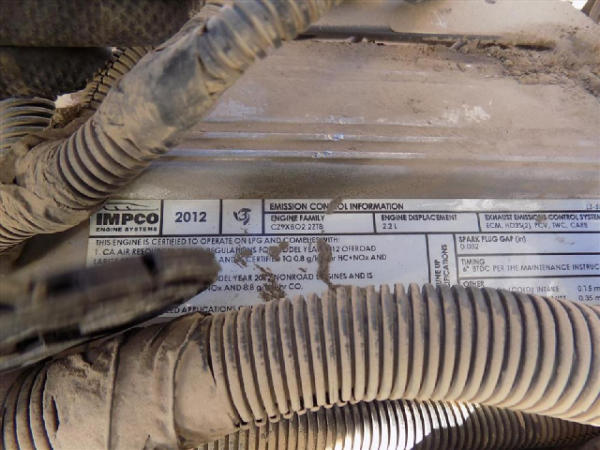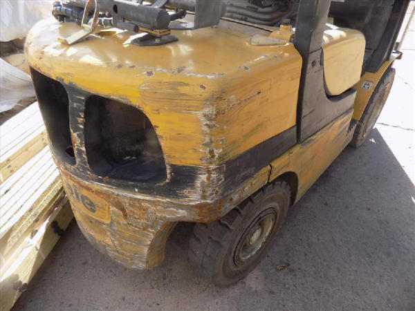 NOT TITLED PER STATE REGULATIONS. NON-RUNNER, FULL OPERATIONS NOT TESTED. SCRATCHES THROUGHOUT THE UNIT. SEAT TORN. FENDERS TORN. FORKS RUSTED AND BENT. BROKEN LIGHT COVERS AND HORN. WARNING LIGHTS PRESENT. HYDRAULIC LEAK AND HOSES CRACKED. E-BRAKE BROKEN. LP TANK NOT INCLUDED.