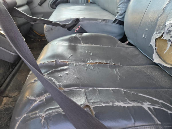NON-RUNNER, FULL OPERATIONS NOT TESTED. OIL LEAK AT OIL PAN AREA. BAD BATTERIES. D/S DOOR PANEL LOOSE. SEATS TORN. EXTERIOR BOX HAS PATCH PANELS AND VARIOUS SCRATCHES. RUST PRESENT ON STEPS AND BODY. INTERIOR BOX LESS LOWER TRIM.