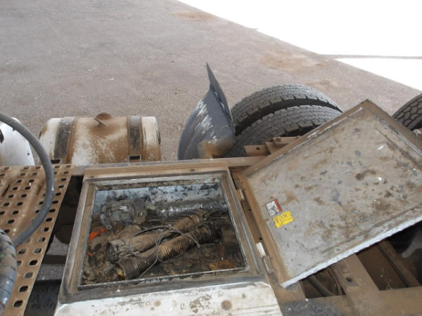 STARTED ON SITE, FULL OPERATIONS NOT TESTED. L/H Front Turn Signal Inop; R/H Rear Turn Signal Inop; Oil Leak At Oil Pan Gasket Area & D/S Of Engine; Front Differential Grinding Under Load-Tooth Or Internal Component Damage Noted; Abnormal Noise While Engine Is Running; Warning Lights Present: Check Engine, Service, ABS & TCS Light; Less Hydraulic Tank Cap & Oil Fill Cap Center; Damaged R/H Mudflap & Lower L/H Fender.