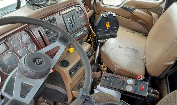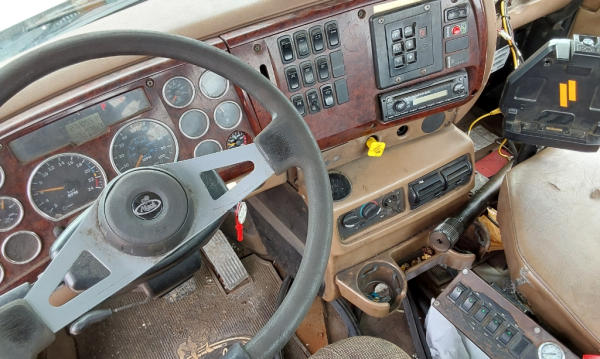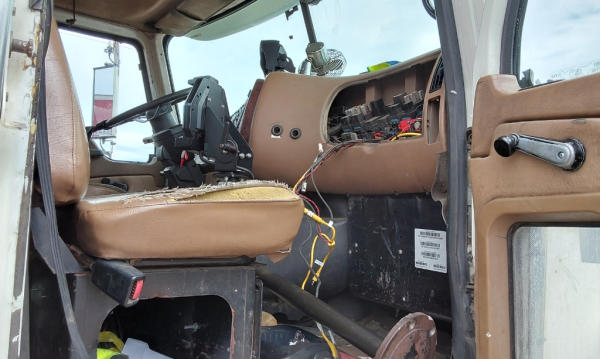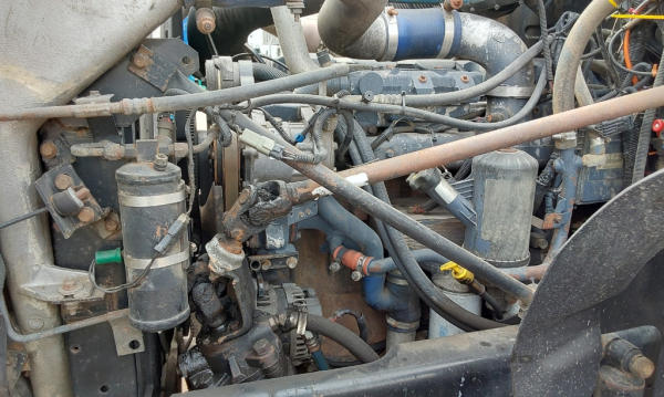 STARTED ON SITE, FULL OPERATIONS NOT TESTED. Unit Does Not Move; Transmission Locked; Less Dash Cover On P/S-Wiring Exposed; Less Front Side Panels; Some Parts Inside Cab; Worn Tires-Rears Singled Out; Rust Throughout.