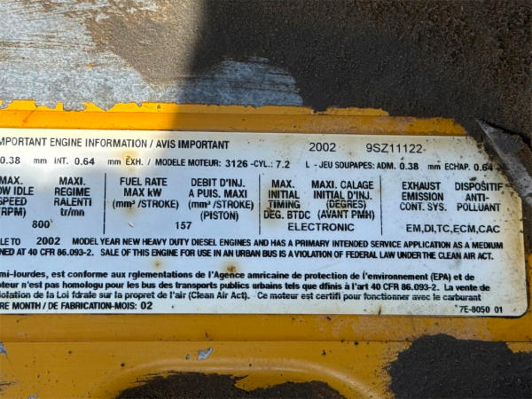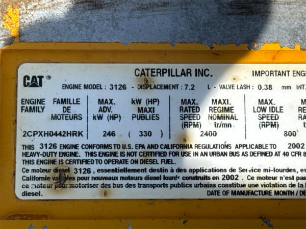 STARTED ON SITE, FULL OPERATIONS NOT TESTED. WARNING LIGHTS PRESENT. REAR MAIN SEAL LEAK.