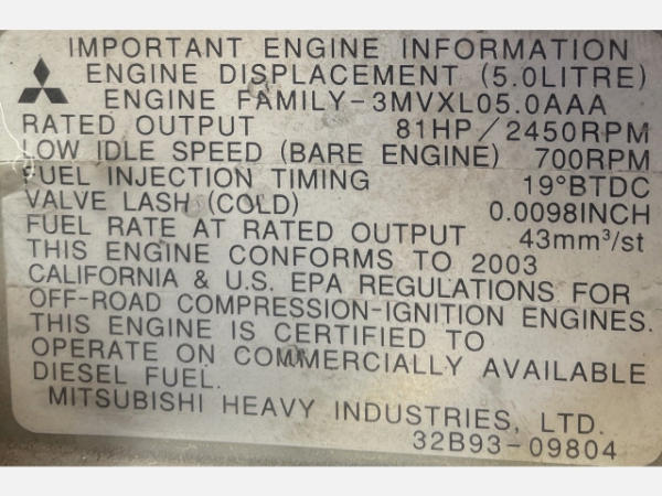 NOT TITLED PER STATE REGULATIONS. STARTED ON SITE, FULL OPERATIONS NOT TESTED. UNIDENTIFIABLE OIL LEAK PRESENT. SURFACE RUST, SCRATCHES AND SCUFFS PRESENT THROUGHOUT UNIT. SEAT TORN. BENT REAR GRILLE.
