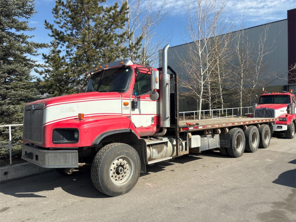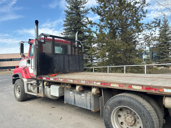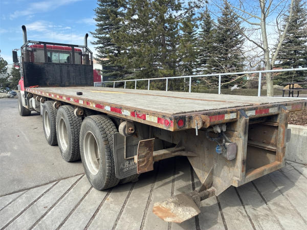 STARTED ON SITE, FULL OPERATIONS NOT TESTED. DECK IS EQUIPPED WITH SLIDING STRAP WINCHES AND UNDERBODY TOOL BOXES AND EQUIPPED TO HAUL MOFFET FORKLIFT.