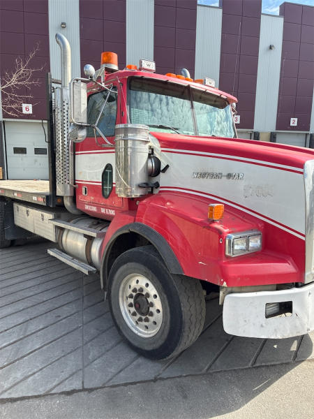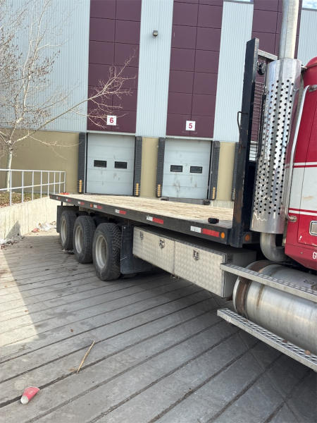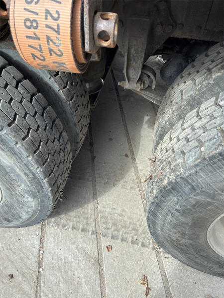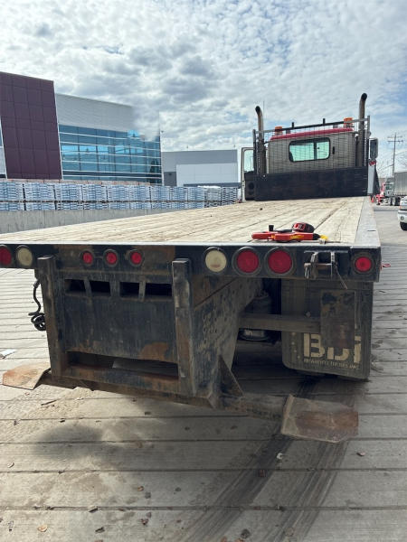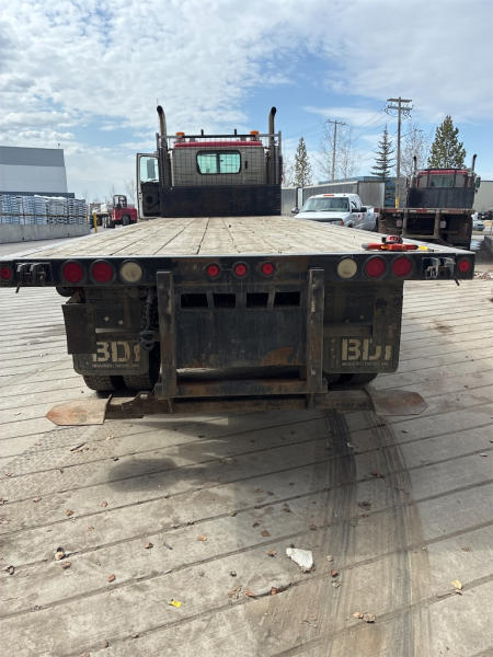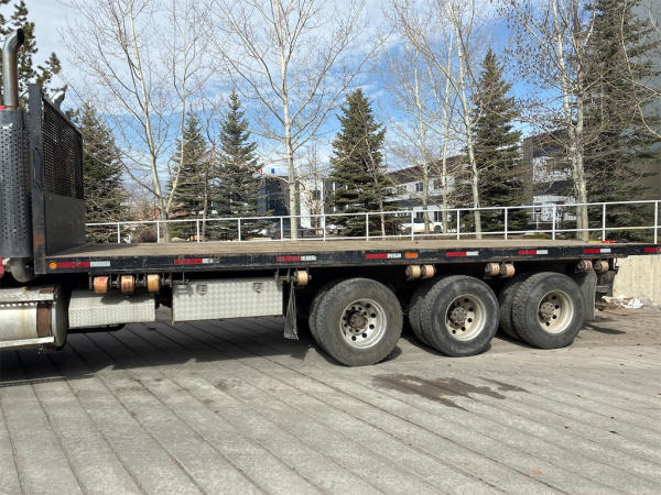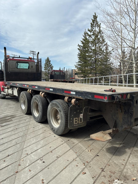 STARTED ON SITE, FULL OPERATIONS NOT TESTED. DECK IS EQUIPPED WITH SLIDING WINCHES AND STRAPS. TIRES WORN.