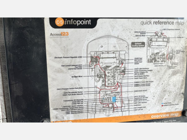 NOT TITLED PER STATE REGULATIONS. STARTED ON SITE, FULL OPERATIONS NOT TESTED. NEW FUEL TANK. NO THROTTLE RESPONSE. HYDRAULICS FUNCTIONAL AND TRANSMISSION ENGAGES IN BOTH FORWARD AND REVERSE. NEEDS MUFFLER REINSTALLED. WARNING LIGHTS PRESENT.
